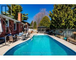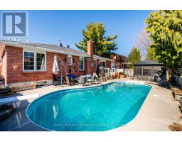 Located in the highly desirable West End, this all-brick bungalow offers the perfect blend of comfort, space, and outdoor living. Featuring 3+1 bedrooms and 3 bathrooms, the home boasts a large main floor primary suite complete with a private ensuite, along with spacious principal rooms including a bright kitchen, living room, and a cozy family room with a gas fireplace. Engineered hardwood flooring runs throughout the main level, adding warmth and style. The fully finished basement extends your living space with a generous rec room (complete with pool table), plus an additional office or craft room. Step outside to your private backyard oasis featuring a 16x32 inground pool with a new liner (2024), a 6-person hot tub with new cover, screened gazebo, cedar planters, and an irrigation system-all fully fenced for privacy. Additional highlights include new gutter guards, central vac, and a Generlink for added peace of mind. (id:46441)