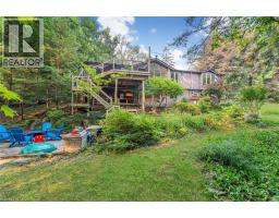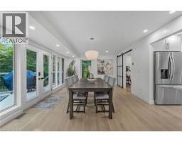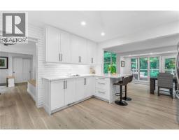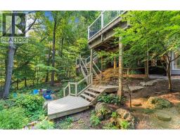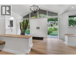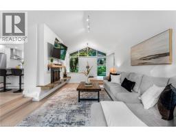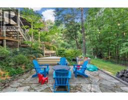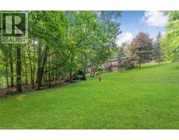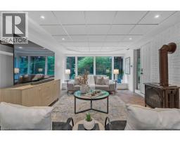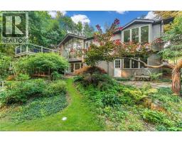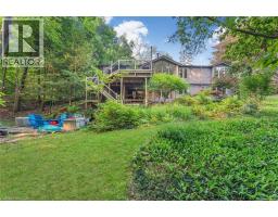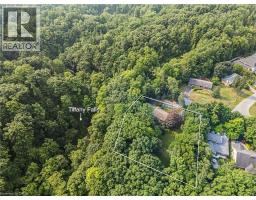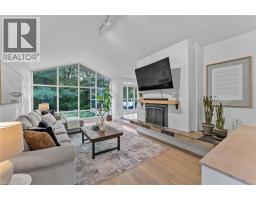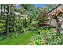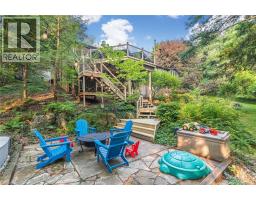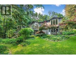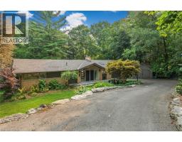 Oversized Double-Wide Lot (previously 2 separate lots) backing onto Tiffany Falls in Ancaster Heights. From the moment you arrive at this stunning 3+2 bedroom bungalow, the mid-century charm and modern touches invite you in — with a striking double-door entry, floor-to-ceiling windows, and vaulted ceilings that flood the main living space with natural light and panoramic views of the forest. This beautifully maintained home offers a spacious and functional layout, featuring a fully finished basement with two additional bedrooms, perfect for extended family or a home office setup. The warm and inviting living room boasts a contemporary fireplace, hardwood floors, and seamless indoor-outdoor living framed by nature. Set on a lush, private lot surrounded by mature trees, this is your opportunity to own a serene escape — just minutes from Ancaster Village, trails, and amenities. A rare find that combines timeless design with the beauty of conservation living. Note that this property was originally two lots with the current bungalow situated on 1 of the 2 lots. If severed you would have nearly a half acre on the second currently empty lot. (id:46441)
