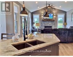 Welcome to your dream home! This stunning 4-year-old custom-built bungaloft offers modern living in a serene country setting 2-minutes from Lake Huron, situated on a sprawling 1.58-acre property, this home boasts 3711 sqft. of living space, 3+1 bedrooms and 3 full bathrooms, providing ample space for your family. As you step inside, you'll be greeted by an open-concept main floor featuring beautiful hardwood floors. The professionally designed, gourmet chef's kitchen is a showstopper, complete with granite countertops, and a large island perfect for entertaining. For added comfort, the tile floor in the kitchen and the two bathrooms have in-floor heat. The adjoining family room offers vaulted ceilings and a gas fireplace! The finished basement is an entertainer's paradise, featuring a home theatre, custom wet bar, and plenty of room for an in-law suite. Outside, you'll find a large double-car garage, a covered front porch perfect for enjoying quiet evenings and fabulous sunset views, and a private, tranquil backyard with a covered deck, patio BBQ, hot tub, and fire pit. The large driveway leads to a 2000 sqft. insulated, heated shop with 14-ft high doors, large enough to store trucks, vehicles, boats, and RVs. The property also comes with a backup generator. Located just a short drive from Goderich and the stunning beaches of Lake Huron, this property offers the perfect blend of country tranquility and convenient access to amenities. Don't miss your chance to own this one-of-a-kind home! Click the video link under Property Information to take the virtual tour. Call for more information. (id:46441)