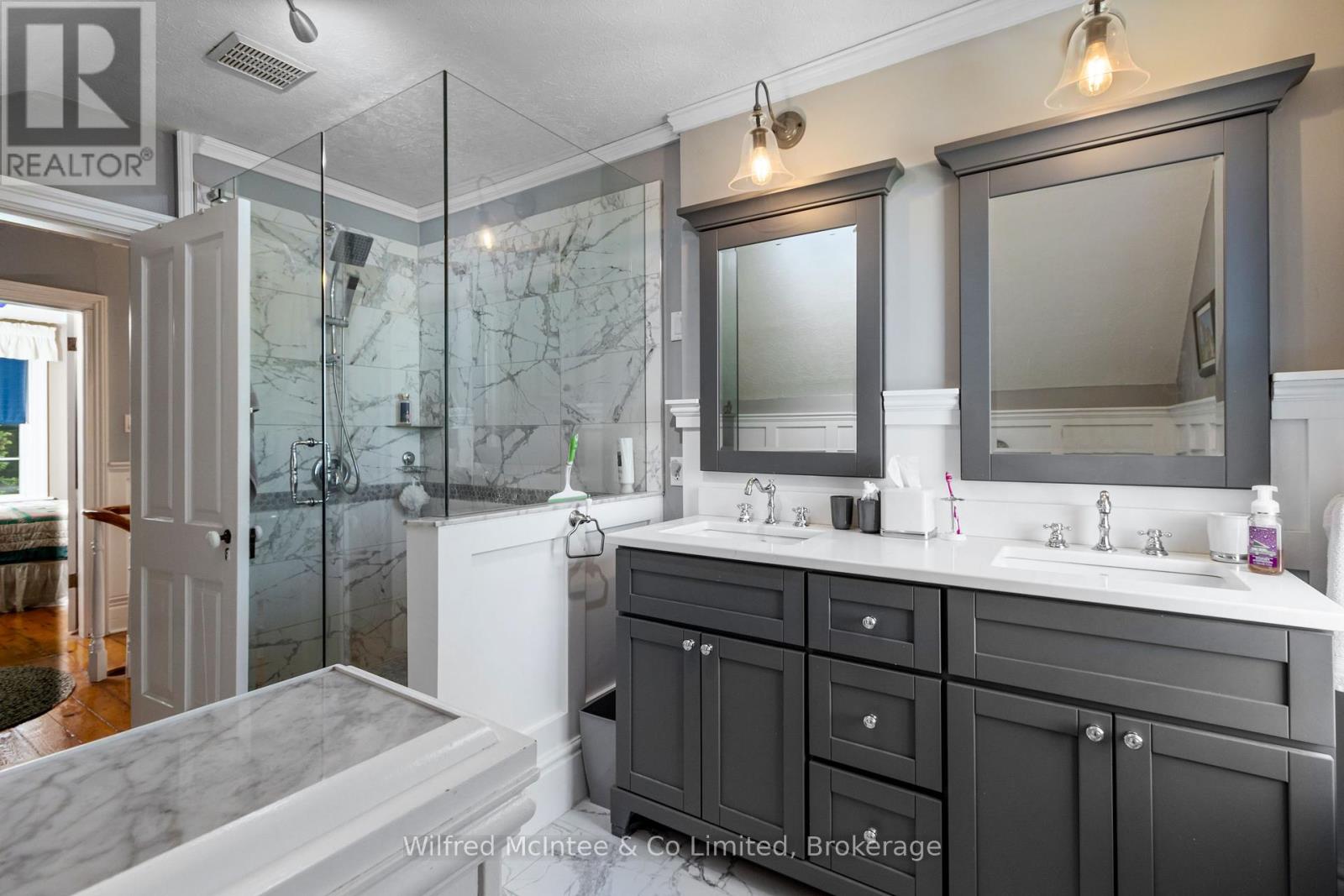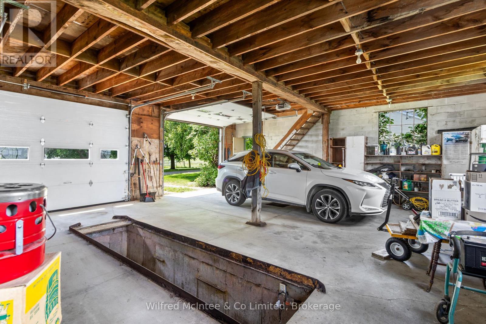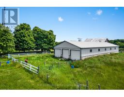 Discover a truly exceptional offering in Tiverton, Ontario. This sprawling 98-acre estate with 60 acres cleared, presents a blend of historical charm, modern luxury, and significant income potential. Ideal for farmers, equestrian enthusiasts, or those seeking a serene rural retreat, this property is a once-in-a-lifetime opportunity. At the heart of the property lies a meticulously renovated 2200qs.ft. century home, boasting 4 spacious bedrooms and a beautifully appointed custom kitchen with blue Cambria quartz countertops, and large island. Unwind in the clawfoot tub. Enjoy sun-drenched mornings in the inviting sunroom, and appreciate the practicality of a well-designed mudroom. This home seamlessly blends historical character with contemporary comforts. Every detail has been thoughtfully considered to create a warm and welcoming family home. Carefully designed to be an equestrian paradise, this property is a dream come true. A state-of-the-art 40'x120' horse barn features 12 generously sized stalls with swinging center partitions for easy clean out, 3 tie stalls, a convenient wash bay, and a well-equipped feed room & tack room. The paddocks provide ample space for your horses to roam and graze. Plus hay fields, and the remaining land is mature forests with trails. There is also the original bank barn, accompanied by an expansive concrete yard, offering additional storage and potential for further livestock. Additionally, a substantial 30'x60' 4-bay shop, complete with a mechanics pit and mezzanine storage, caters to a multitude of needs, whether for personal projects or professional endeavors. The coverall building at road is also part of this property for hay and equipment storage. This property offers not only a stunning lifestyle but also desirable income potential. A cell phone tower lease provides consistent, reliable long term revenue. All while located only minutes from Lake Huron, and Bruce Power. (id:46441)