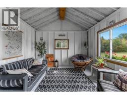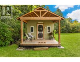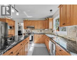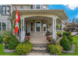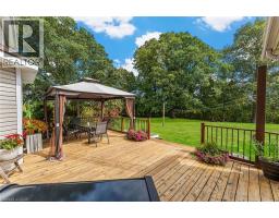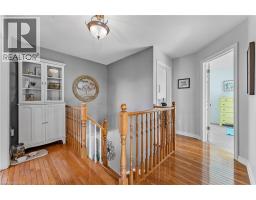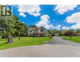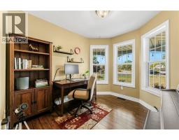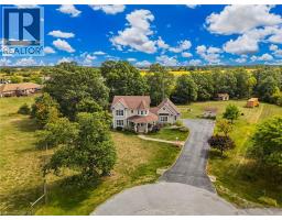 If a country home is what you are looking for, look no further. You will love this 2-storey home on an acre of land at the end of a quiet cul-de-sac. An inviting wrap-around front porch that leads you inside to the main floor features a bright office, powder room, and an eat-in kitchen/dining with granite counters and porcelain tile flooring that flows through to the foyer and powder room. The eat-in kitchen opens to a large back deck with a gazebo. Step into the formal dining room with lots of natural light, the living room highlighted by rich hardwood flooring and a cozy gas fireplace. Upstairs you’ll find a beautiful, spacious primary suite with a walk-through closet with custom cabinetry and an updated 4 pc ensuite. Two generous sized bedrooms each with closet space and natural light. A 4-pc bath, and a convenient laundry room. The finished bonus room above the double car garage is great for an extra bedroom, guest room or den. In the basement, a large rec room/exercise room, a crafting room and workshop space and a cold storage. A long paved driveway with parking for up to 10 vehicles. The double garage comes with two automatic door openers. Outside, plenty of shade from all of the mature oak trees, and two sheds - a charming “she-shed”, and a garden shed for extra storage. A double garage with two automatic door openers. You will love the beautiful yard with plenty of mature shade trees. This is a must-see! A rare opportunity to enjoy small-town living in a well-loved family home. (id:46441)