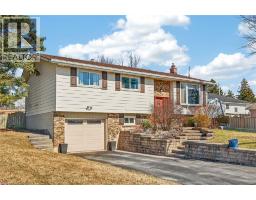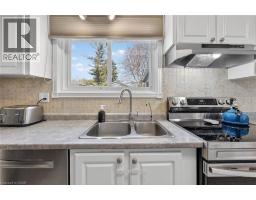 Nestled on an oversized pie-shaped lot this raised bungalow has a lot to offer. Front entry with wainscoting. Main floor offers a spacious living room complete with hardwood floors and a bay window. This, in turn, is open to the dining room, which has large sliding doors leading to the 3 season sunroom - perfect spot to start and end your day overlooking your backyard. Kitchen is loaded with white cabinetry and new appliances. Gorgeous main bathroom completely renovated. Rest of main floor provides 3 bedrooms. Lower level features a large family room with gas fireplace & large above grade window. A 4th bedroom, laundry/utility room, 2 piece bath and access to the garage completes this level. Parking is a breeze with parking for 4 on the asphalt paved driveway plus an additional spot in the attached garage with inside access. Located close to amenities, walking paths, the Grand River, schools & parks. Offering peace of mind with many updates including: Furnace & A/C (2021); House & Sunroom Roof (2022); Main Bath (2022); Chimney (2021); Hot Water Heater (2021); All Indoor Outlets & Switches (2020); Dishwasher (2020); Washer (2023); Dryer (2025); Gas Fireplace Inspected/Serviced w/ a 2 yr warranty (2025); Fridge & Stove (2026). (id:46441)