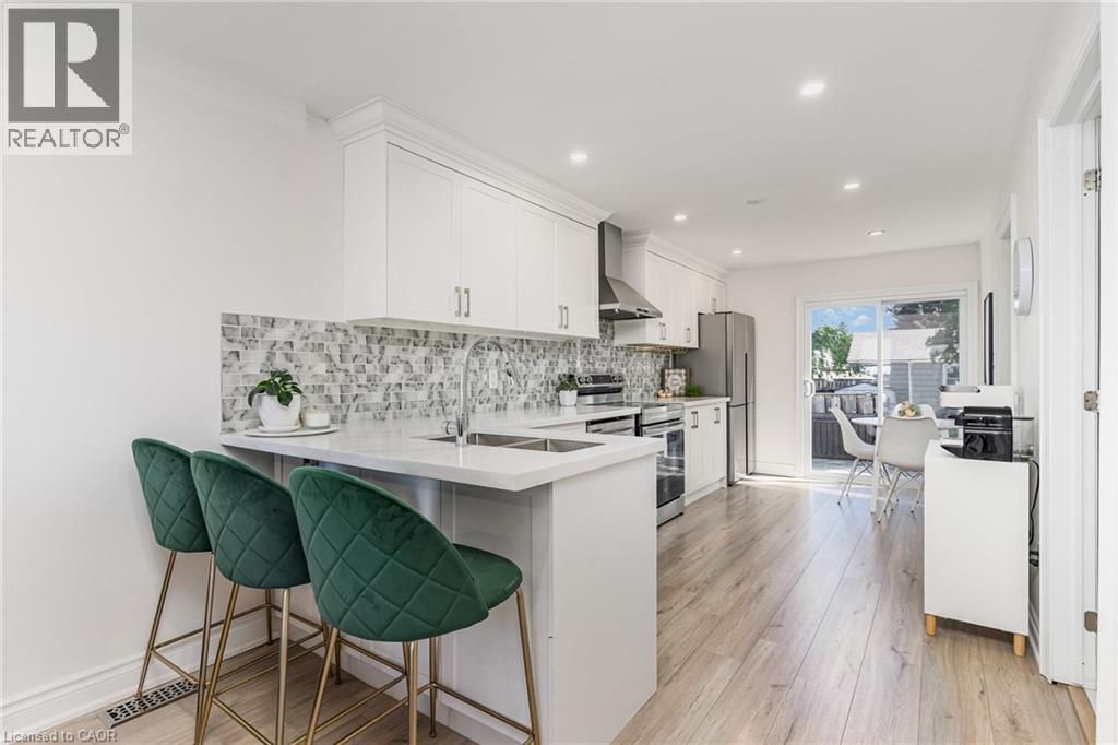 Condo alternative in ideal Hamilton Mountain location! Walking distance to The Juravinski, Shops and Restaurants of Concession Street, Schools, Parks and Public Transit. Quick drive to the Sherman Cut and the LINC for commuters. This 2 bedroom, 1 bathroom bungalow was updated in 2021 with new electrical, plumbing, flooring, and HVAC. Enjoy a new (2021), large eat-in kitchen complete with quartz countertops, bar seating, and direct access to the rear deck and yard. An updated 4 pc bath (2021) complete with ensuite laundry and 2 bedrooms both with closets. 1 car front yard parking. Do not miss out, book your showing today! (id:46441)