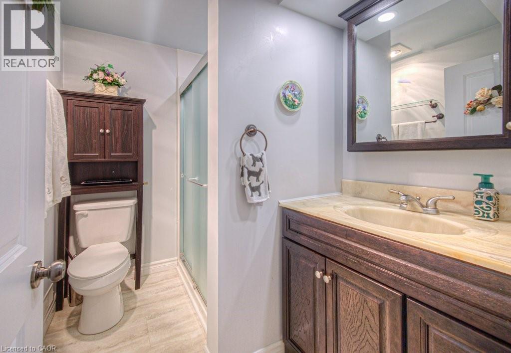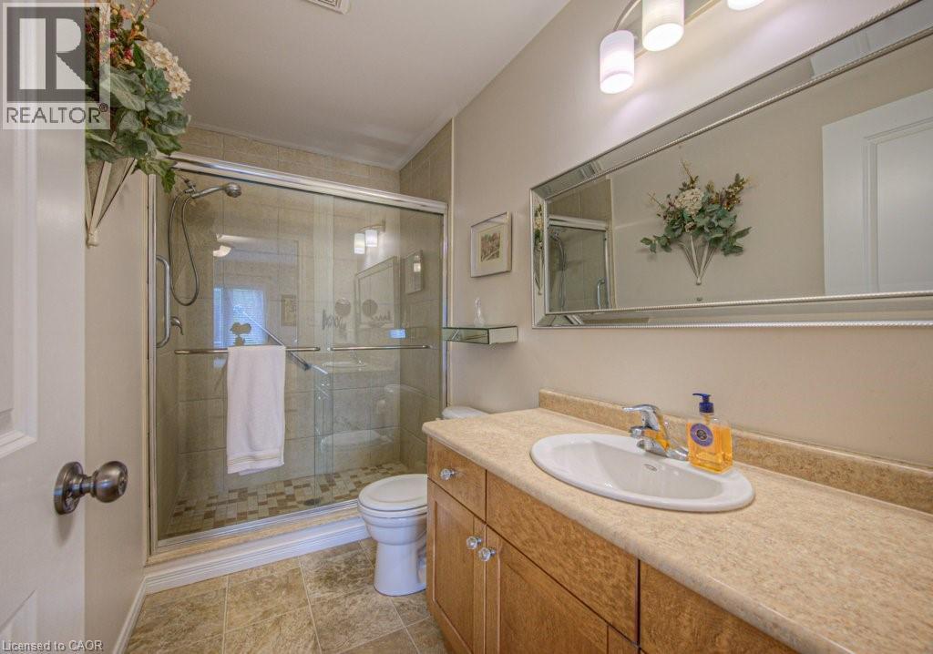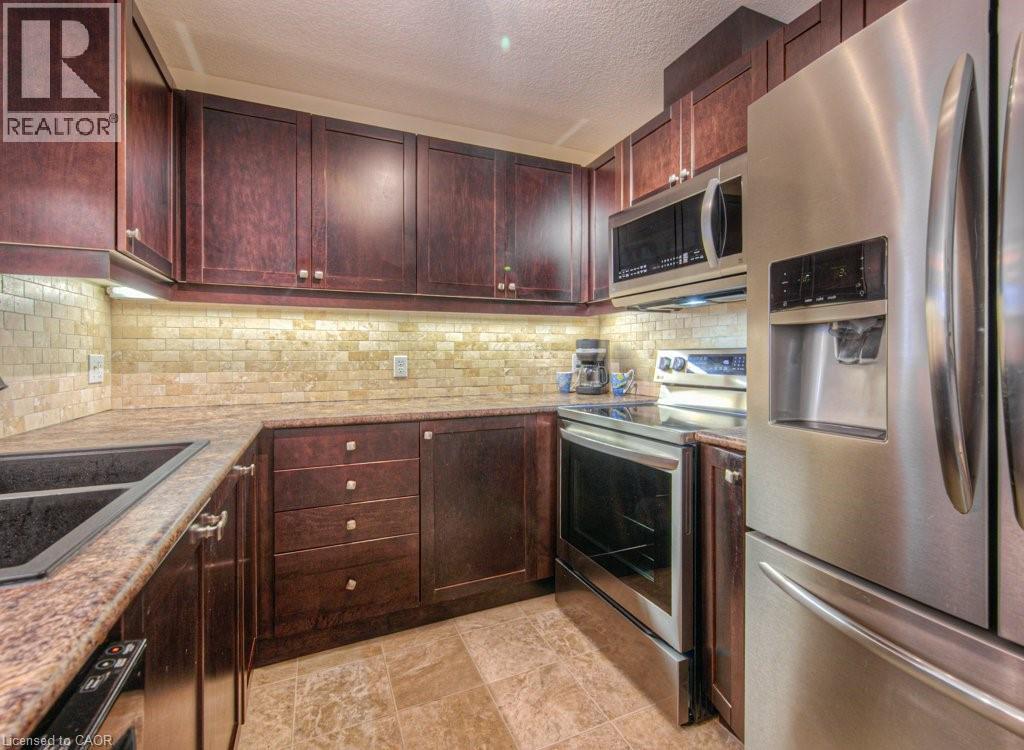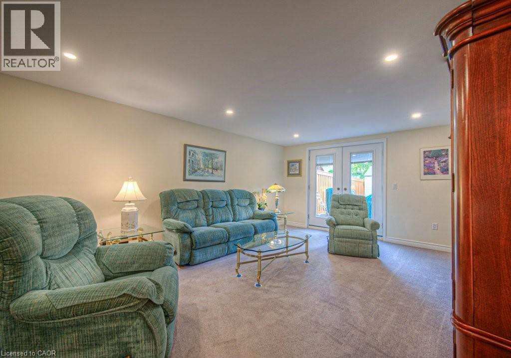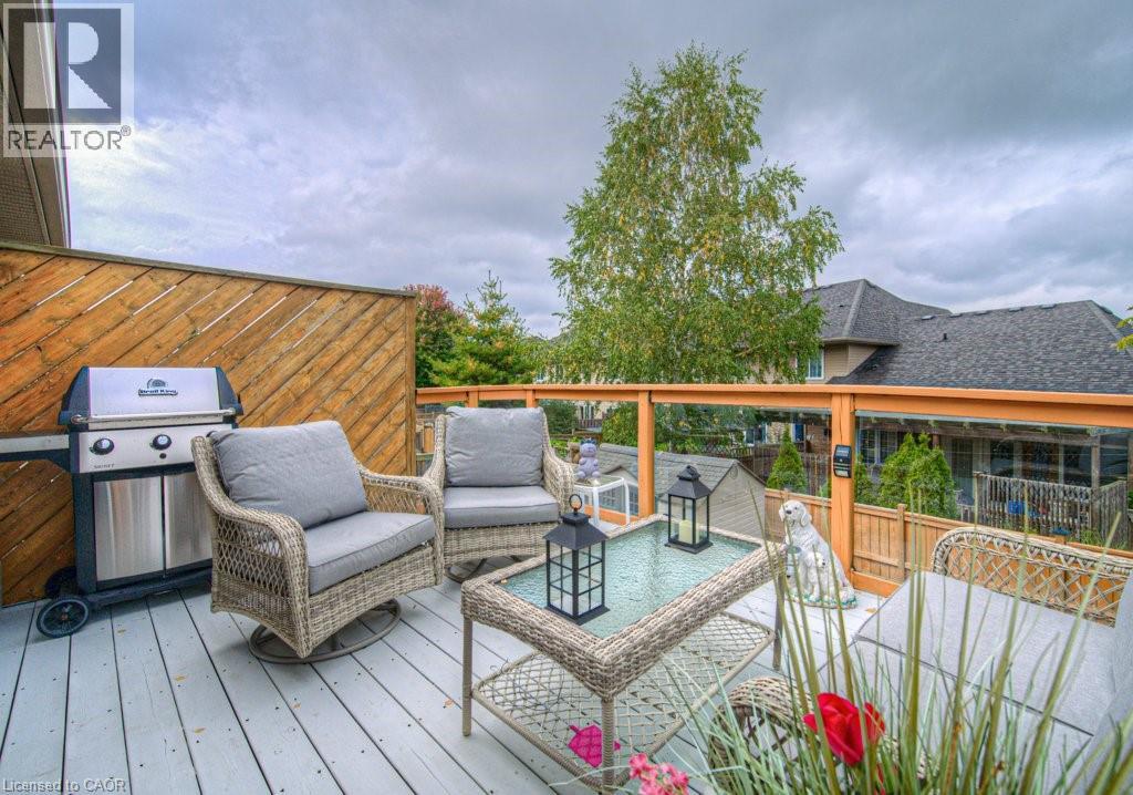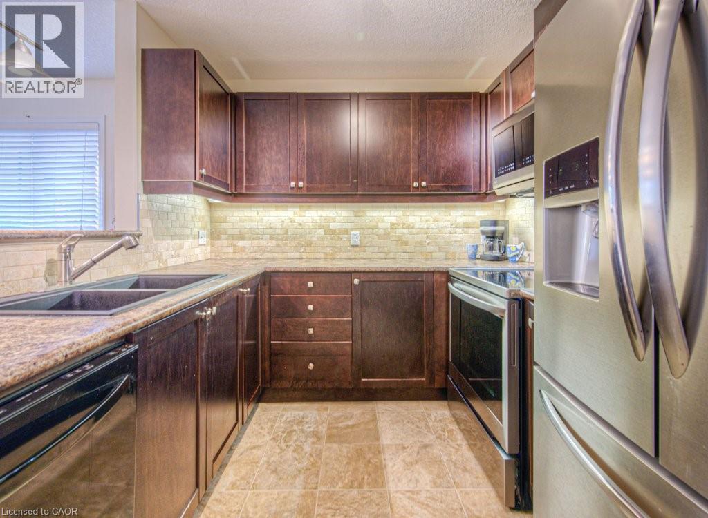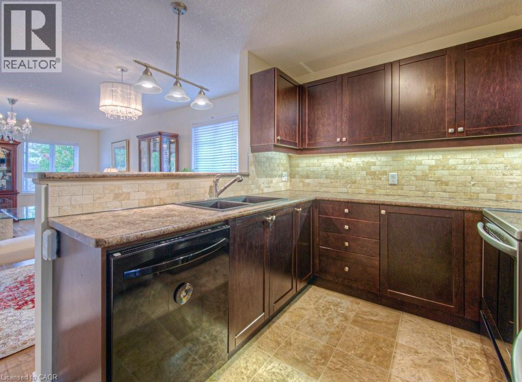 Immaculately maintained and designed with executive style in mind, this stunning freehold bungalow townhome with a walkout basement offers an exceptional blend of comfort, functionality, and modern elegance. The main floor boasts a bright-open concept layout, where the kitchen flows seamlessly into the living and dining areas. Rich dark maple hardwood floors and cabinetry are complemented by a clean, modern title backsplash, adding warmth and sophistication to the heart of the home. The spacious master suite features a walk-in closet and a ensuite highlighted by a massive custom glass and tile shower, while a second bedroom and main floor laundry finish of this level. Downstairs, the fully finished walkout basement impresses with a large recreation room, an additional generous-sized bedroom, a den, and a full bathroom, creating ideal space for extended family, a home office, or a private retreat. Outdoor living equally inviting with a large deck off the living room, overlooking a great-sized fenced backyard complete with an interlocking stone patio below. Combining timeless finishes with a thoughtful floor plan, this home delivers a rare opportunity to enjoy bungalow-style living with the bonus of a fully finished lower level and expansive outdoor space. (id:46441)