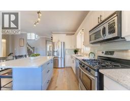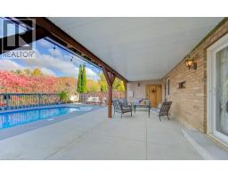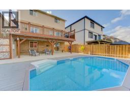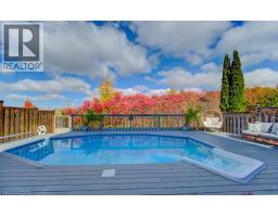 Welcome to 99 Maitland St in sought-after Huron Park! This stunning 3-bedroom, 3.5-bath home sits on a fully fenced lot backing onto serene views of nature, offering the perfect blend of comfort and style in a family-friendly neighborhood. Step into the spacious foyer and be greeted by 9-ft ceilings, crown molding and modern hickory flooring that flows through the open-concept main floor. The bright living room is filled with natural light, providing an inviting space for relaxing or entertaining. The contemporary kitchen features a large island, granite countertops, glass backsplash, stainless steel appliances, new hardware, and abundant cabinetry-ideal for everyday living and hosting. The adjoining dining area opens to a beautiful upper deck overlooking the expansive backyard and peaceful green views. Upstairs, you will find a massive great room with soaring 12-ft ceilings, large windows, and custom built-ins-a perfect family gathering space. Three spacious bedrooms include a primary suite with two large closets and a 4-pc ensuite. The updated luxurious main bath and new carpeting complete the upper level. The fully finished lower level offers new flooring, a stylish 3-pc bath with barn-style door, and a versatile rec room easily adaptable for a 4th bedroom. Walk out to the covered concrete patio with built-in stair lighting and enjoy your private backyard oasis featuring a heated saltwater pool surrounded by composite deck, a perfect space for summer relaxation and entertaining. Located just minutes from walking trails, schools, shopping, and highway access, this home truly has it all- space, style, and location! Other features include large attic (approx 600 sq ft) accessible via pull-down stairs (excellent storage space), R.O. system, gas hook up for BBQ and fire pit, rough-in for gas fireplace (outside lower level), rough-in for spa package for hot-tub, built-in lights for patio and side stairs, insulated garage door. (id:46441)