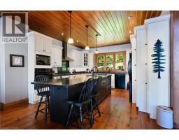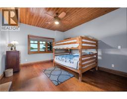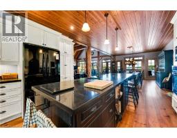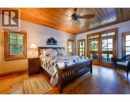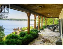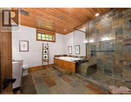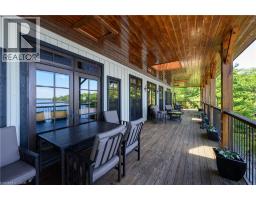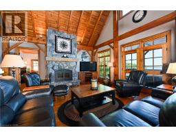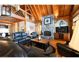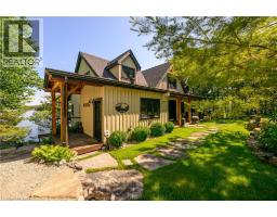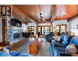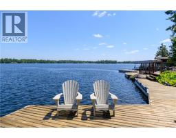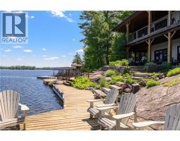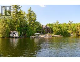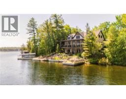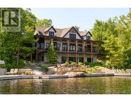 Remarkable Muskoka lakeside retreat on Six Mile Lake, on year-round municipal road, only 90 minutes from GTA. Impressive custom-build w/stunning lake views may be most prestigious property on “the mile.” Expansive 333ft of prime, deep waterfront, 1.66 acres w/mature trees & privacy, & absolute show-stopper 6000sqft, 6 bedrm lake house w/gorgeous pine detail T/O. Open-concept main lvl overlooks lake & accesses the 68x12 covered deck, & includes the kitchen w/quartz CTs & 11ft centre island w/breakfast bar, great rm w/granite stone F/P & 22ft vaulted ceiling, spacious dining rm, main floor primary bedrm w/6pce ensuite, Muskoka rm, 2pce bath, & mudrm/laundry rm. 2nd lvl has a den/office, & 2 very large bedrms that could be converted to 4 if desired. Walk-out lower lvl offers a family rm w/granite stone F/P, bar area w/seating for 6, 3 more large bedrms, 8pce bath, & sliding doors to patio & lake. Red Pine & slate floors T/O, 10ft ceilings & in-floor heating on main & lower lvl, pine ceilings, & post & beam construction & ICF foundation, all display the care in this magnificent homes design. Exterior offers an oversized double garage w/600sqft man cave/loft w/heat & AC, triple garage w/2 insulated & heated, & another single garage at side of property, plus parking for 20 more on driveways. Clear & pristine waterfront 6-12ft deep off docks, + bonus shallow wading area at side. 1500sqft of decks & docks along water, including U-shaped boat slip engineered to support a boathouse, plus 1400sqft of covered deck & patio overlooking the water, & 450sqft of deck at back of home, totalling over 3350sqft of decking & patio. NE exposure at waterfront provides beautiful sunrises & sunsets. 280sqft bunkie at water’s edge. Systems include geothermal heating/cooling, drilled well w/complete water system, bio-filter septic system, on-demand water heater, & generator. Contact listing Realtor or any Realtor for floor plans, boathouse drawings, & for full write-up & details of property. (id:46441)