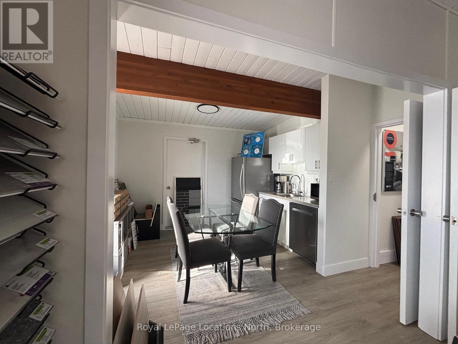 Renovated professional space in central Meaford in a building of other Professional Services. Located within walking distance to post office, banks and local shops. Large front reception/waiting area with vinyl plank flooring, two multi use rooms with windows, cabinetry and sink, a smaller private office and a 2pc washroom. Municipal Lot across the street. All utilities (hydro/gas/water) maintenance, snow removal and lawncare are in addition to the base rent at a breakdown of $525.76/month. (id:46441)