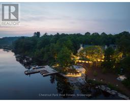 Looking for the ultimate in privacy, luxury and elegance with world class amenities at your back door? This rarest of offerings will not only meet, but surpass those expectations. With gated access through a world class private golf course you arrive at your destination situated on a private members only Lake in the heart of Muskoka. This stunning property features 530 feet of natural shoreline and over 9 acres of mature forested landscaping with expansive sunset vistas on Cassidy Lake. Quality and craftsmanship are evident throughout the 6 plus bedroom Lakehouse. Beautiful perennial gardens and granite outcroppings lead to the main entrance. The stunning rubble stone structure offers tranquil lake views through expansive windows and capture the exquisite surrounds. Extensive stone patios, outdoor kitchen with stone fireplace and additionally a lakeside stone firepit along with four slip dock, complete with hydraulic lifts , will provide for hours of outdoor living. Extensive night sky friendly lightscaping illuminate this magnificent home. Chefs kitchen and large pantry will be well suited to entertaining. The main floor features two wood burning stone fireplaces, one in the Great room, the other in the family room which bookend the central kitchen and dining area. For late night gatherings the screened Muskoka Room will extend you outdoor summer evening. Main floor primary bedroom with spa like en-suite with five guest bedrooms on the second floor. Additionally the coach house can accommodate two additional guest bedrooms complete with private living space and large second floor deck with lake views. The garage/coach house will provide ample space for six vehicles, or any toys you might have. Adjacent golf cart port with charger will keep you at the ready for a quick game at the renowned and exclusive Oviinbyrd Golf Club. (id:46441)
