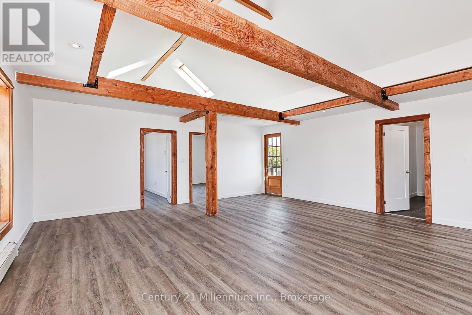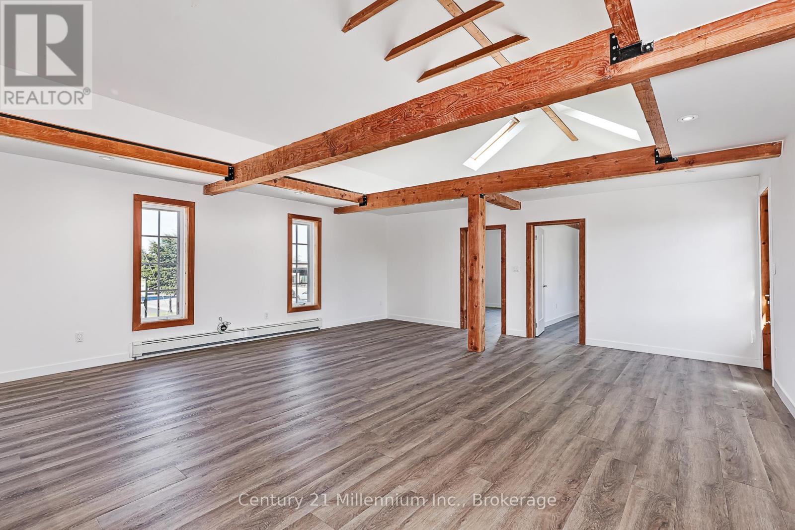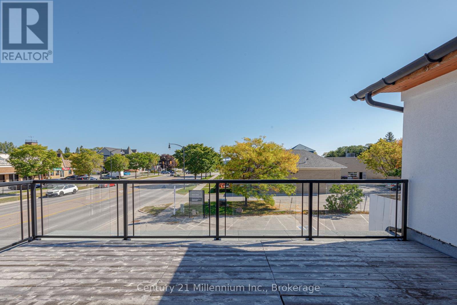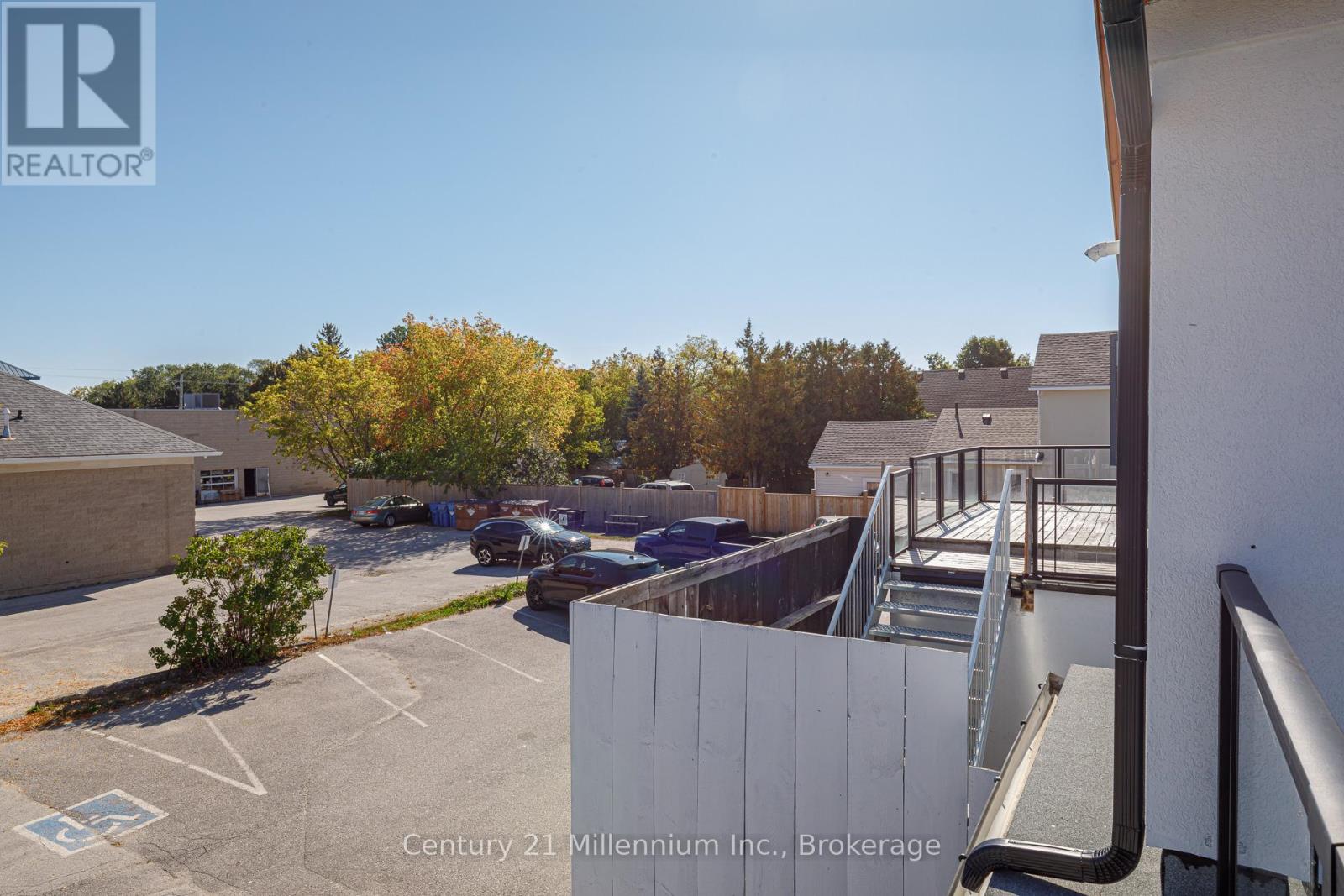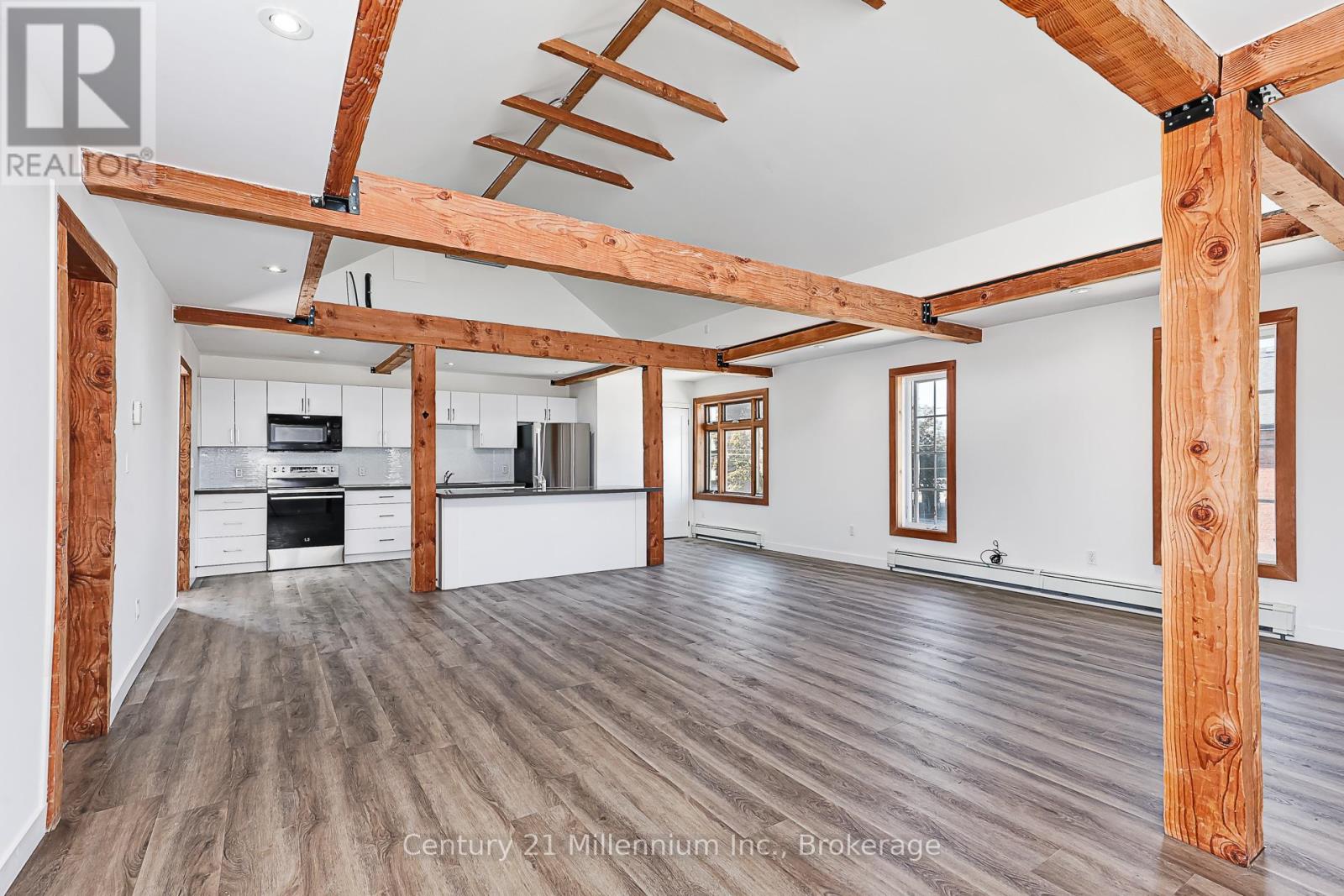 Bright & Beautiful 3-Bedroom Collingwood Rental. Welcome to this stunning 3-bedroom, 1.5-bathroom rental, perfectly situated in the heart of Collingwood. This apartment is a true gem, featuring a bright, open-concept layout highlighted by gorgeous exposed wood beams that add warmth and character throughout. The spacious kitchen is a chef's dream, boasting a large island, brand-new stainless steel fridge and stove, and ample counter space for all your cooking and entertaining needs. Step outside onto your large private terrace for al fresco dining or morning coffee, and enjoy a second private balcony for even more outdoor space .This prime location puts you just steps away from all that Collingwood has to offer. Enjoy a short stroll to local shops, fantastic restaurants, scenic trails, and the beautiful shores of Georgian Bay. With year-round activities like skiing, pickleball, hiking, and biking all at your doorstep, this unit is the perfect base for your next adventure. 2 parking spots included. Utilities and internet extra. (id:46441)